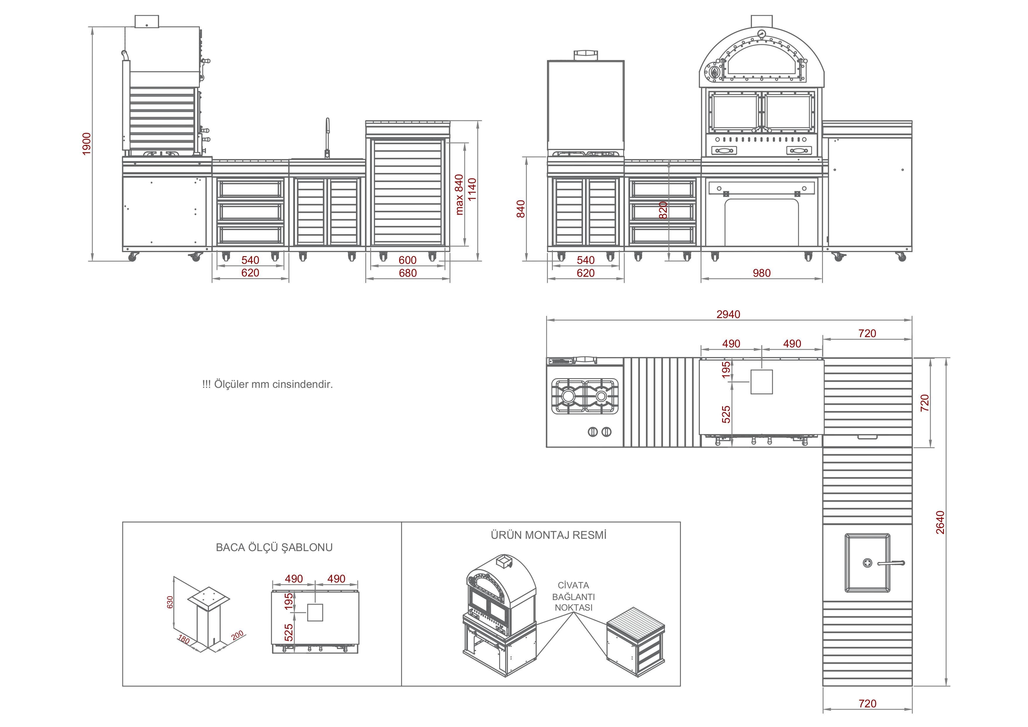 - Teslimat dahil: 60 cm şapkalı baca + standart krom et ızgarası