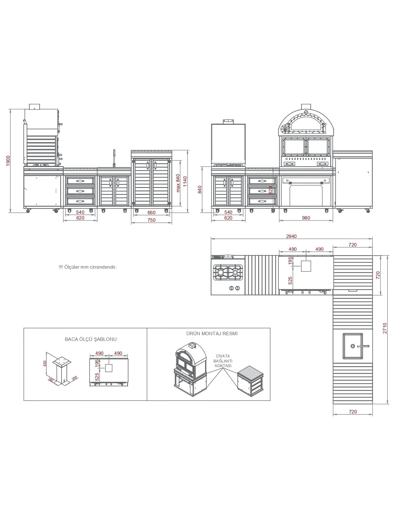 - Fırın bölümü: İzolasyonlu ve yalıtımlı