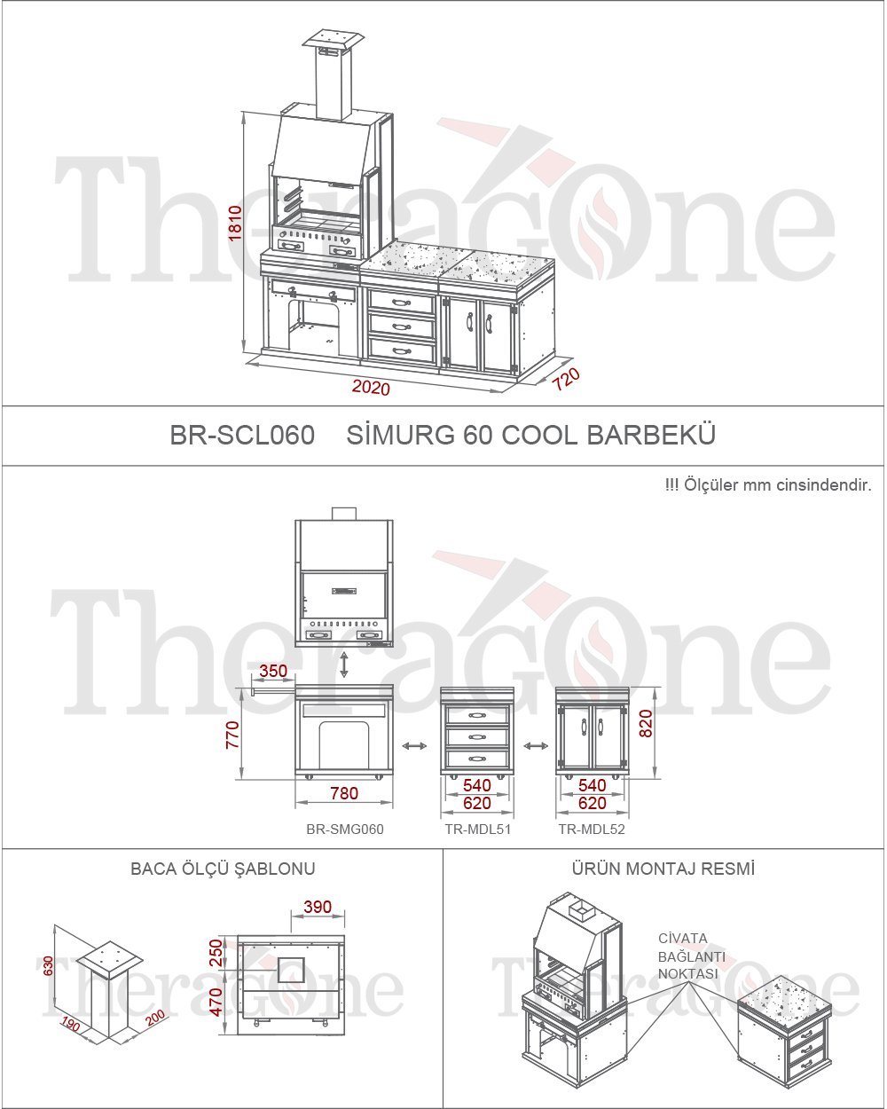 -Ürün içeriği; çekmece modülü, simurg barbekü ve dolap modülü ile beraber 3 modülden oluşmuştur,