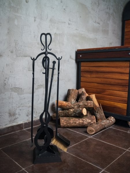 1 adet ayaklı askı ve 4 adet aparattan oluşmaktadır ( maşa, kürek, kanca, fırça )
